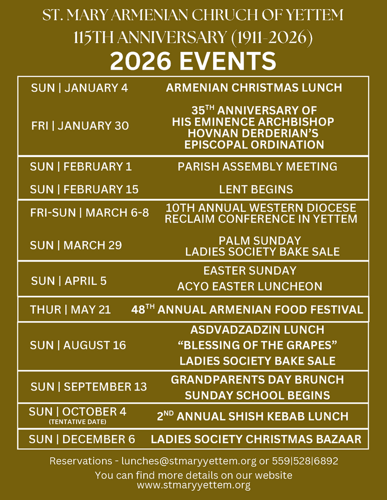 Copyright 2024 St. Mary Armenian Apostolic Church of Yettem.